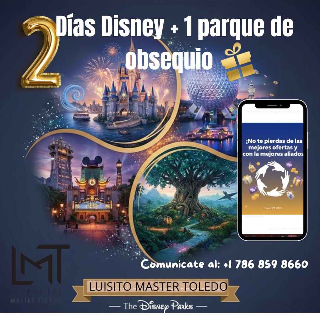 Te ofrecemos paquetes personalizado para que puedas visitar parques temáticos de Disney World a elección, con muy buenas promociones a partir de dos días, para que puedas ahorrar dinero en cualquier temporada del año, con una sorpresa adicional.