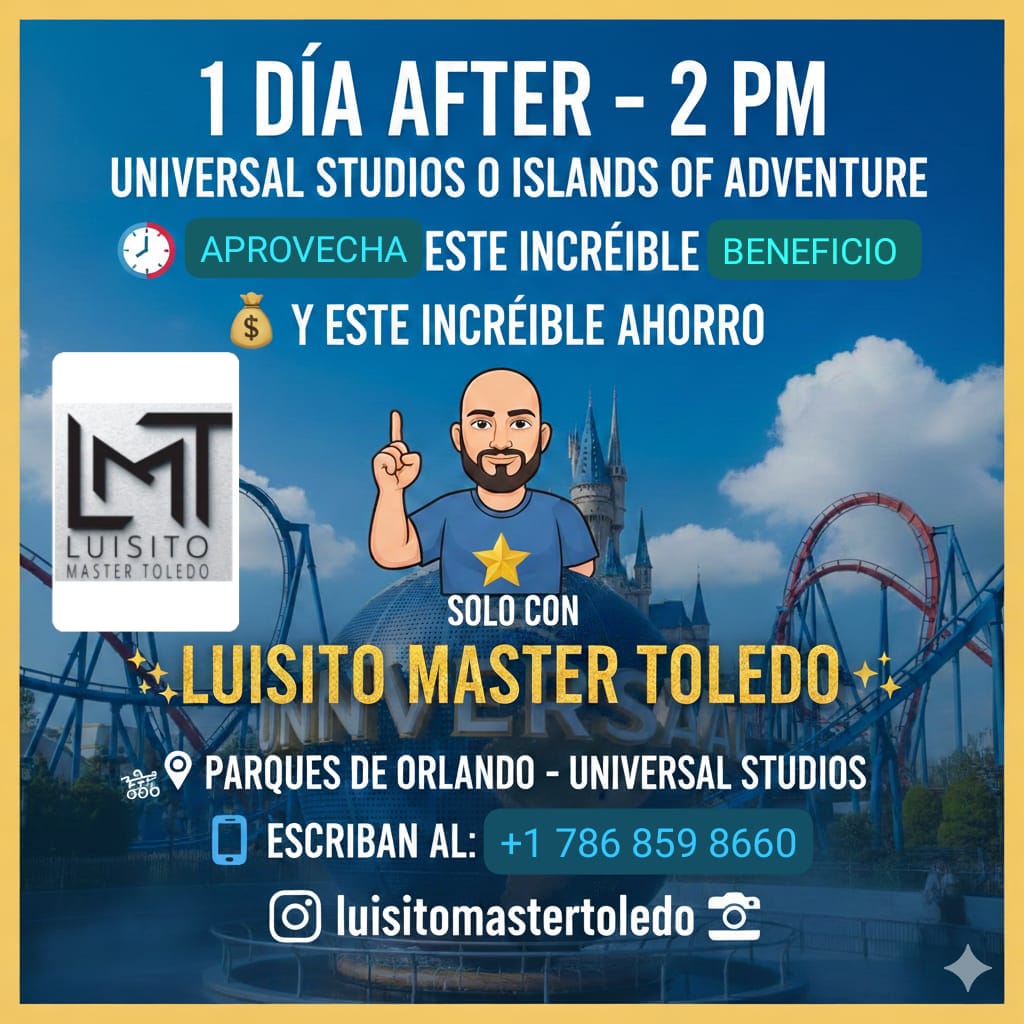 ¡No esperes más! Contáctanos hoy y comienza a planificar tu próxima escapada a Orlando. Con Luisito Master Toledo tus vacaciones están en buenas manos.